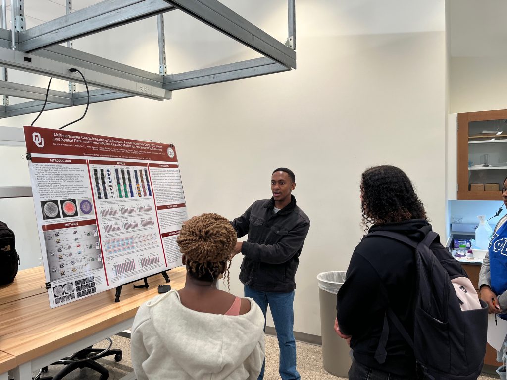 04/24--Lucas and Bornface present at the BME 1421 Research & Design Showcase, good job!