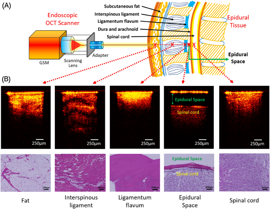 Wang, P. Calle, J. Reynolds, N. Ton, Z. Zhang, F. Yan, A. Donaldson, A. Ladymon, P. Roberts, A. Armendi, K. Fung, S. Shettar, C. Pan, and Q. Tang, "Epidural anesthesia needle guidance by forward-view endoscopic optical coherence tomography and deep learning". Sci Rep 12, 9057 (2022). https://doi.org/10.1038/s41598-022-12950-7