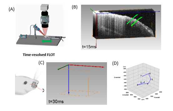 We applied angled FLOT (aFLOT) to record 3D neural activities evoked in the whisker system of mice by deflection of a single whisker in vivo. The results show that it is possible to obtain 3D functional maps of the sensory periphery in the brain. This approach can be broadly applicable to functional imaging of other brain structures.